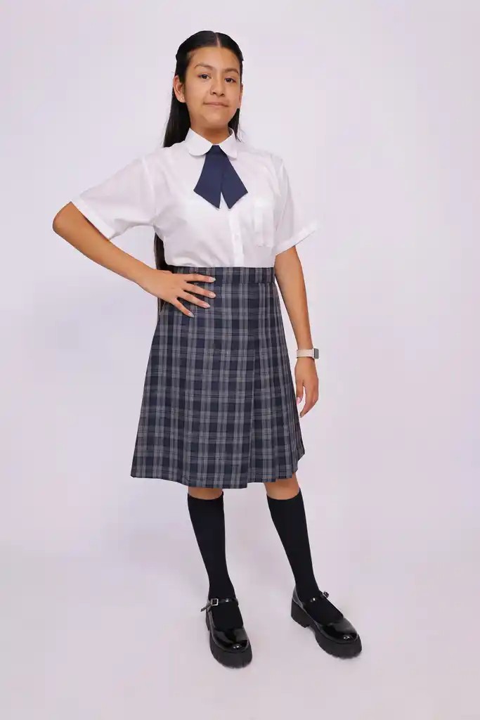 Falda escolar plisada a cuadros en tonos azul, diseñada para brindar comodidad, durabilidad y una presentación ordenada durante todo el año escolar.