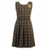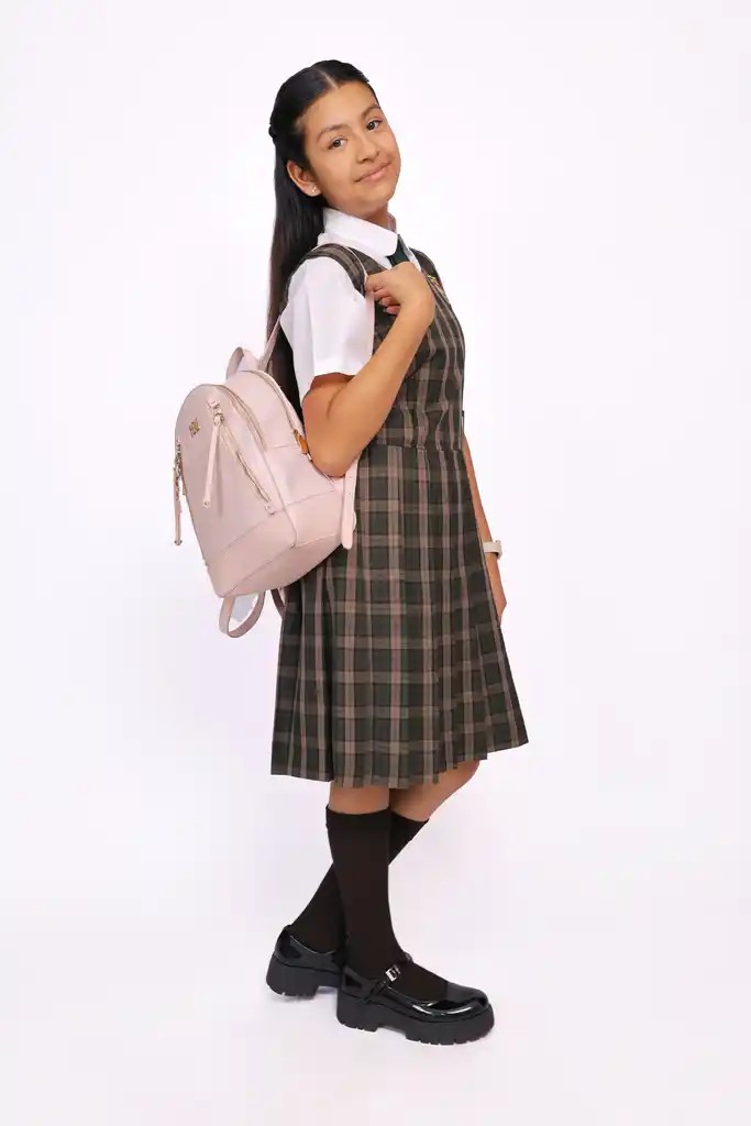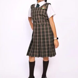 Jumper escolar plisado a cuadros en tonos verde y marrón, diseñado para ofrecer comodidad, resistencia y una presentación impecable durante todo el año escolar.
